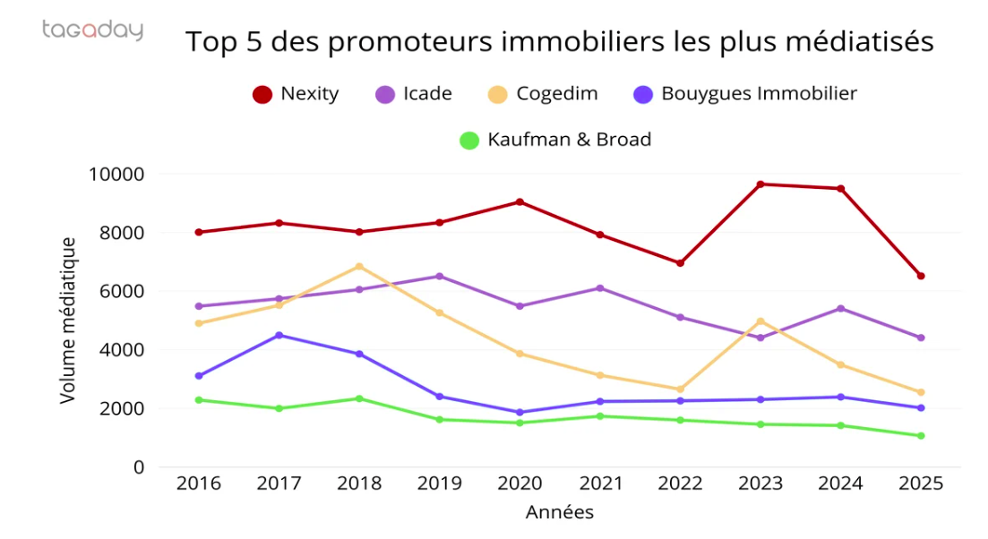 Benchmark Tagaday : entre cycles économiques et crises : comment les promoteurs immobiliers ont occupé l'espace médiatique sur 10 ans